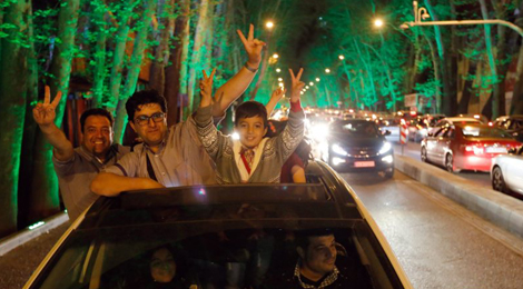 Er barstte een groot feest los in de straten van Teheran. Uit toeterende auto’s wapperden Iraanse vlaggen en veel mensen toonden met hun vingers het V-teken door de openstaande ramen.