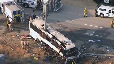 Bij een busongeluk in de Amerikaanse staat Californië zijn vijf doden gevallen. Een onbekend aantal passagiers raakte gewond. Het ongeluk gebeurde toen de bus ’s nachts tegen de paal van een verkeersbord botste. De bus werd voor een flink deel opengereten.