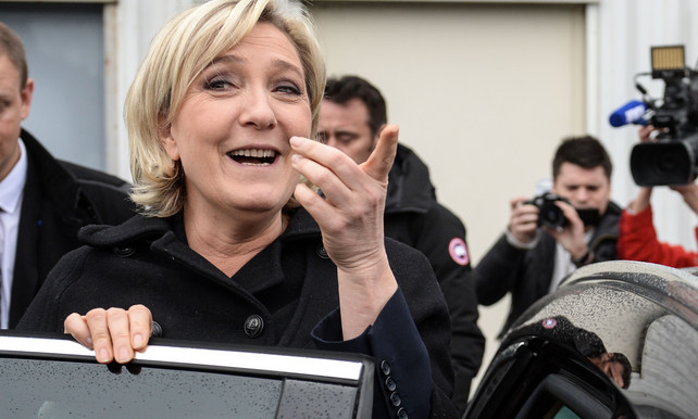 De leider van het Front National zal naar verwachting de eerste ronde van de presidentsverkiezingen winnen met meer dan 25 procent van de stemmen. In de peilingen ligt ze op kop.