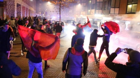 De politie Rotterdam adviseert inmiddels om het centrum van de stad te mijden. Er wordt gezwaaid met Marokkaanse vlaggen en auto’s rijden toeterend rond. Op de Hoefkade in Den Haag greep de politie in, maar tot grote ongeregeldheden kwam het niet.