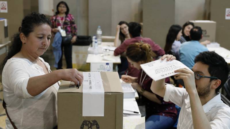 De andere kandidaten zijn centrumpoliticus Sergio Fajardo en de voormalige vicepresident Germén Vargas Lleras, die op de steun van president Santos mag rekenen. Als geen van de kandidaten een meerderheid haalt, is er over drie weken een tweede ronde.