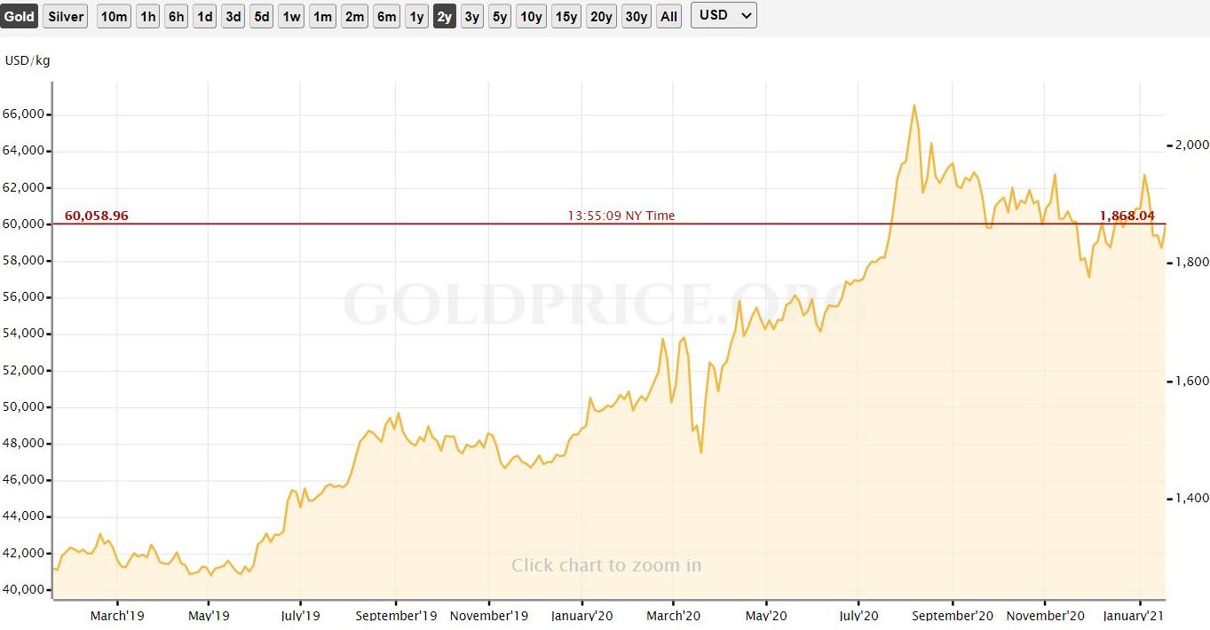 Zoals ik eerder zei, de staat heeft vaste inkomsten. Elke maand beginnen die weer binnen te komen, zodat alle vaste kosten kunnen worden betaald. Hiermee wil ik slechts aangeven dat de president niet moet laten overkomen dat het Bouta schuld is, of dat het een nieuw verschijnsel is dat een staatskas is leeggeraakt. Het is slechts tijdelijk. Laat de president u ook vertellen dat sinds juli 2020, de prijs van goud rond de US$ 1800 per troy ounce zat, en het had zijn piek bereikt op 6 augustus 2020 van US$ 2.070,05 per troy once (1 troy ounce = 31.1034768 gram).