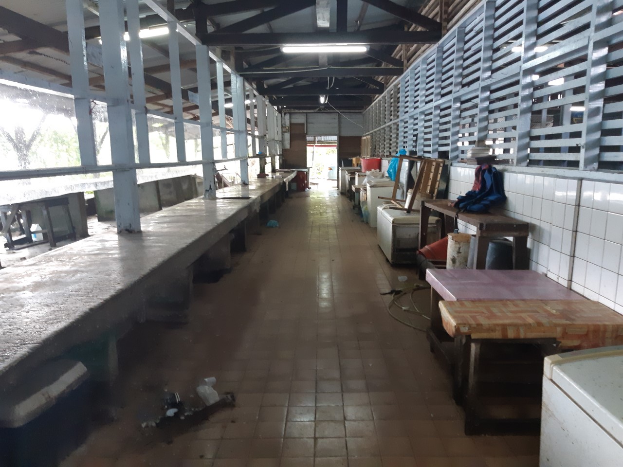 Het voorstel is mijnerzijds gedaan om ijzeren platen te laten plaatsen en het gedeelte tussen de visafdeling en de Nickerierivier op te hopen. Een betonnen dijk te plaatsen, is ook een optie. Dit voorstel is reeds eerder gedaan en tevens toegezegd door de toenmalige regering onder leiding van Desi Bouterse. We zijn reeds enkele jaren verder en de situatie is integendeel verergerd. Ik ben tevens getuige geweest van de dak lekkages. In afwachting van een eventueel nieuw gebouw, dient men waar nodig tijdelijk het dak te vervangen.