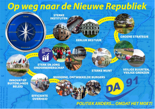 Als uw politieke leider van DA’91 deel ik met trots onze gedurfde visie om ons geliefde land naar een welvarende toekomst te leiden. Wij hebben ons gerealiseerd dat om Suriname zowel economisch als ethisch weer sterk te maken, wij een krachtige routekaart nodig hebben die ons de weg wijst naar succes. Onze Routekaart voor Vooruitgang is uniek en ongeëvenaard in zijn grondigheid en inclusiviteit. Wij willen concrete stappen ondernemen om de uitdagingen van onze natie aan te pakken en kansen te creëren voor elk individu, ongeacht achtergrond of afkomst.