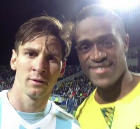 Lionel Messi had in eerste instantie niet helemaal door wat er aan de hand was, maar kon er daarna wel om lachen. De Jamaican Deshorn Brown wilde tijdens de Copa America dolgraag op de foto met zijn tegenstander.