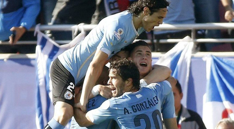 Na de eerste schermutselingen was het titelhouder Uruguay dat na een half uur spelen scoorde. Verdediger José Giménez kopte via de paal binnen vanuit een corner. Een uitstekende redding van doelman Justo Villar voorkwam dat Uruguay nog voor rust al op 2-0 kwam. Wederom Giménez was dicht bij een treffer, maar de doelman stond paraat.