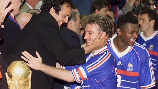 De Franse bondscoach Didier Deschamps stond destijds als speler op het veld in het Stade de France. Na de gewonnen finale tegen Brazilië nam hij als aanvoerder de beker in ontvangst.