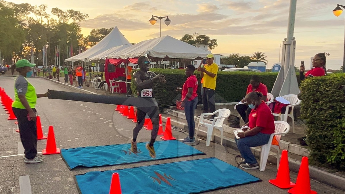 Zachary Thomas kwam pas tien seconden na hem binnen, terwijl Shaquille Pikientio 36:34 minuten nodig had om de race te completeren. Isaiah Jacott (36:56) en Wensley Sehoe (37:13) gingen als vierde en vijfde over de finish, terwijl de Guyanees Kenneth Hartog 39:54 liet klokken.