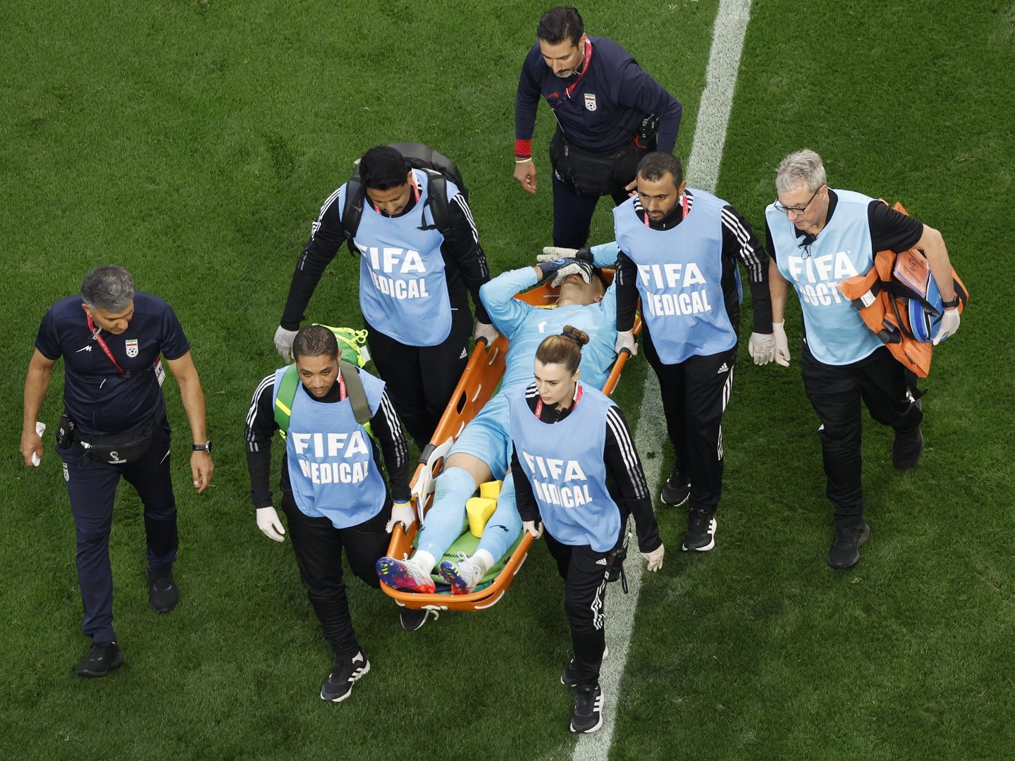 Engeland-Iran lag in de beginfase lang stil door een blessurebehandeling van keeper Alireza Beiranvand, die bij een Engelse voorzet hard in botsing kwam met een van zijn verdedigers. De Iraniër moest zich laten vervangen.