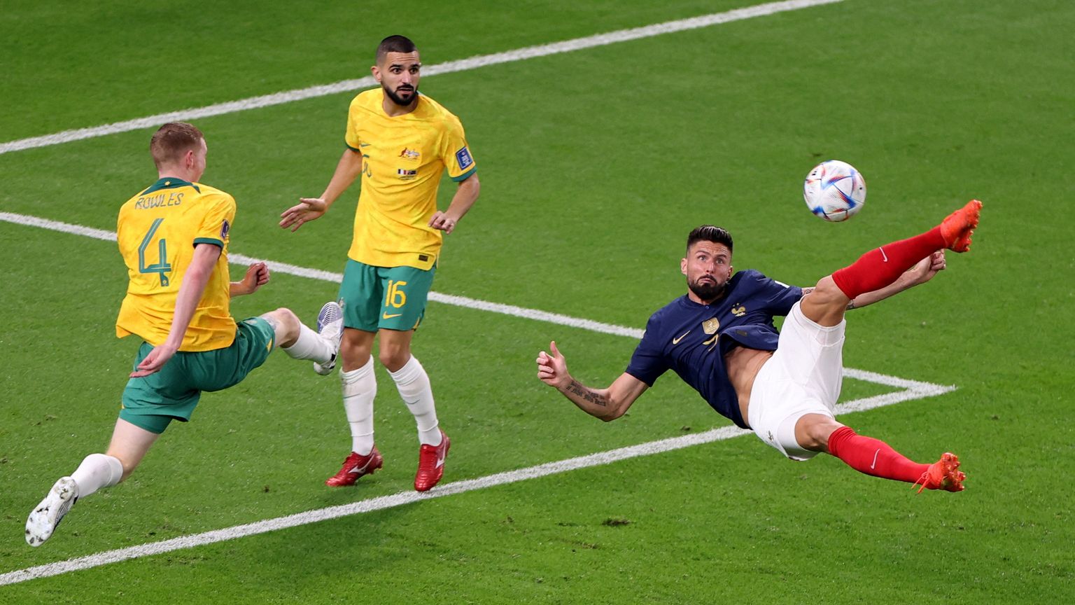 Australië kwam nog wel verrassend op een 0-1-voorsprong tegen de regerend wereldkampioen. Oud-Spartaan Craig Goodwin schoot in de negende minuut binnen uit een voorzet, maar bij rust leidde het veel sterkere Frankrijk met 2-1. Adrien Rabiot kopte in de 27e minuut raak (1-1) en vijf minuten later maakte de 36-jarige Giroud zijn vijftigste interlandgoal (2-1).