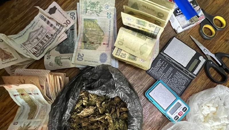 Een gemengd team van de politie van Regio Oost heeft gisteren aan de Spatzalmvisweg in het district Commewijne de 33-jarige O.S. aangehouden voor overtreding van de Wet verdovende middelen. Op de verdachte werden aangetroffen en in beslag genomen een hoeveelheid cocaïne, hasj, marihuana, fijnwegers, scharen en een groot geldbedrag in SRD.