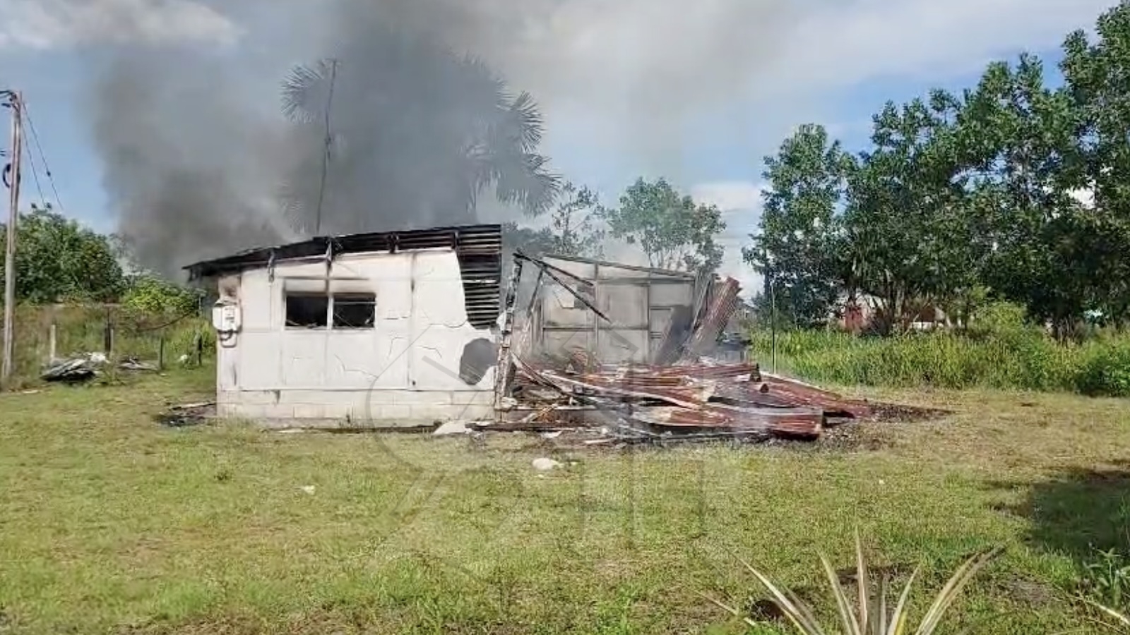 Een flatwoning vervaardigd van cementboard brandde gisteren af aan de Witsantiweg in het district Para.