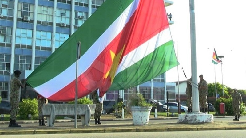 Suriname viert op 25 november 49 jaar Staatkundige Onafhankelijkheid. Jaarlijks worden naar aanloop van de onafhankelijkheidsviering de reuzenvlaggen oftewel mammoetvlaggen op verschillende locaties gehesen. Vandaag is de gigantische vlag nabij het Kabinet van de Vicepresident (Regeringsgebouw) de lucht ingegaan. Hiervoor waren enkele militairen verantwoordelijk.
