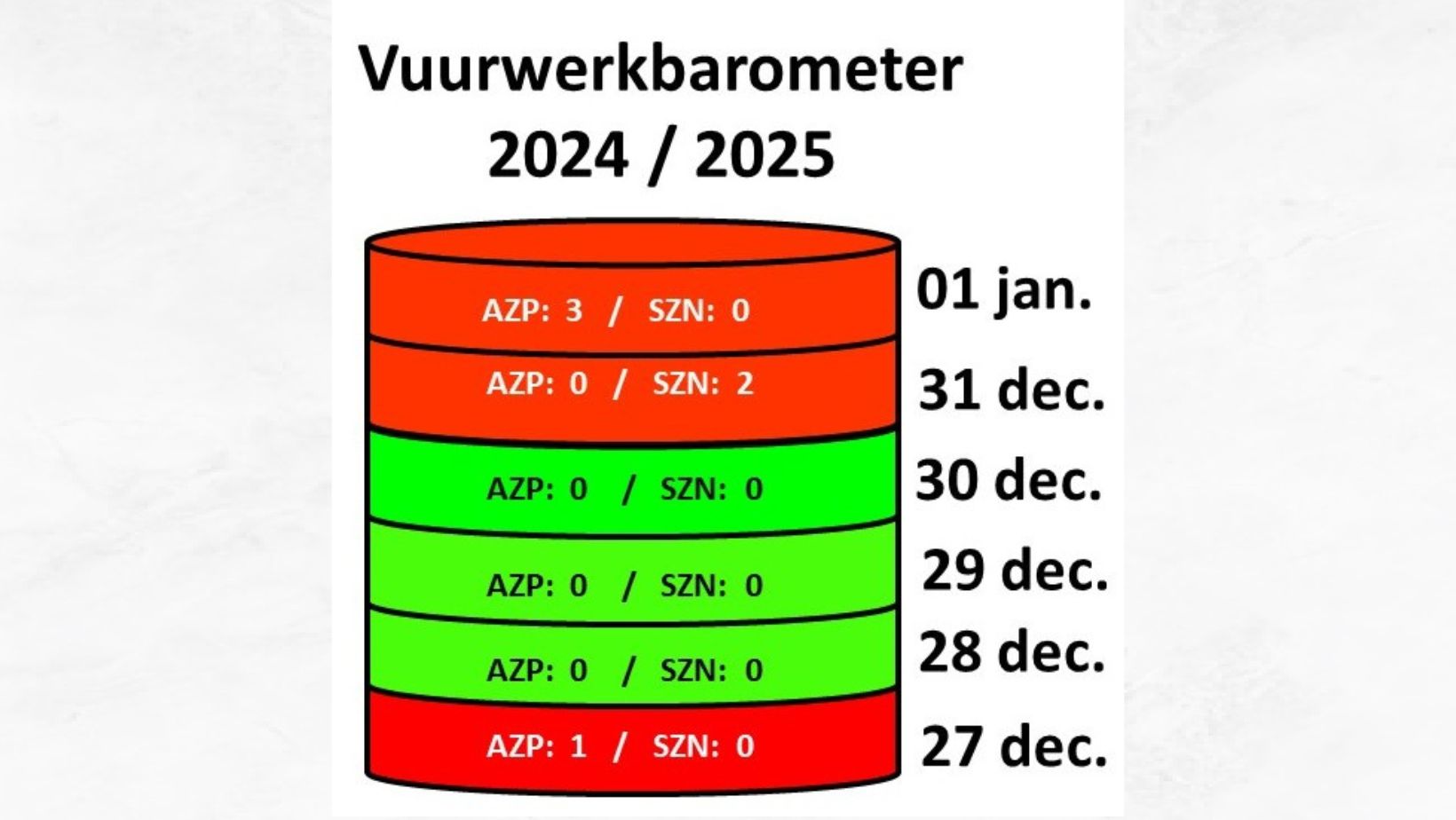 De vuurwerkperiode van 27 december 2024 tot en met 1 januari 2025 is afgesloten met zes geregistreerde slachtoffers. Het laatste incident vond plaats in de vooravond van 1 januari, toen een 9-jarig meisje aan het voorhoofd gewond raakte door vuurwerk.