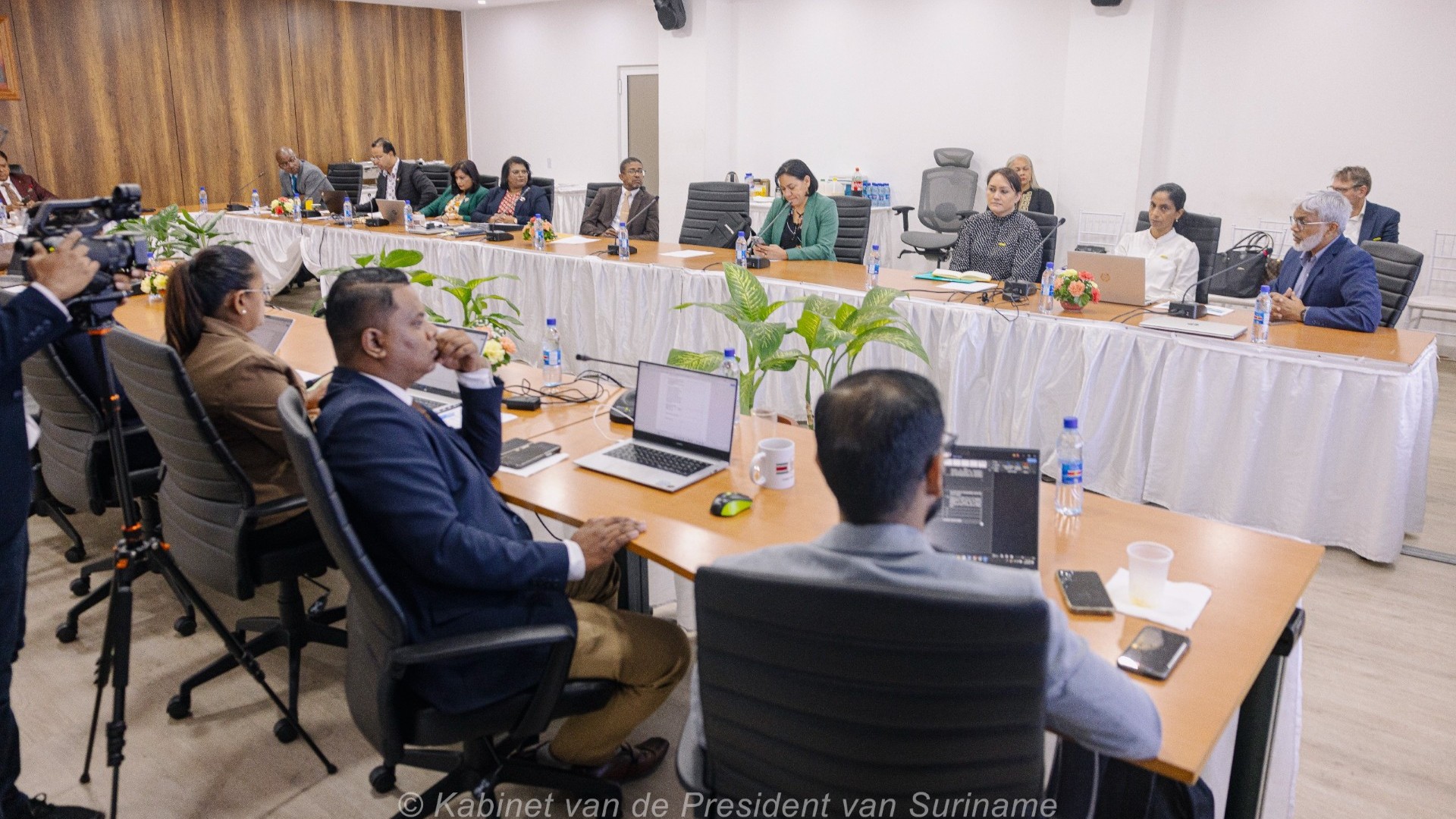 Verder hielden CEO Annand Jagesar van Staatsolie en deskundigen van het ministerie van Sociale Zaken en Volkshuisvesting (Sozavo) een presentatie. Jagesar bracht de regering op de hoogte van de laatste ontwikkelingen rond Blok 52, terwijl Sozavo onder leiding van onderdirecteur Financieel Beheer Naomi Tobi de uitdagingen binnen het ministerie en de voortgang van sociale uitkeringen besprak.