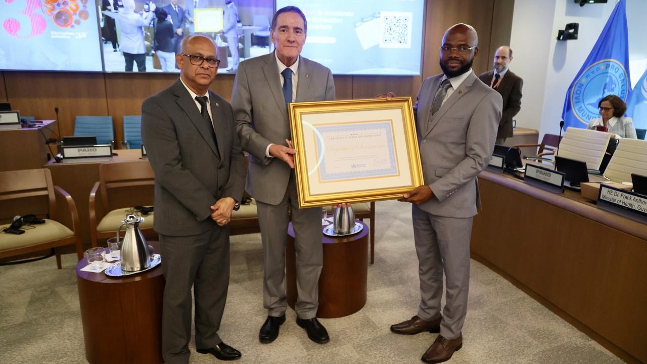De uitreiking werd bijgewoond door onder andere dr. Jarbas Barbosa, directeur van PAHO, en Albert Ramdin, secretaris-generaal van de Organisatie van Amerikaanse Staten (OAS). Tegelijkertijd volgden vertegenwoordigers van het ministerie, het Bureau voor Openbare Gezondheidszorg (BOG) en partners in Paramaribo de ceremonie live.