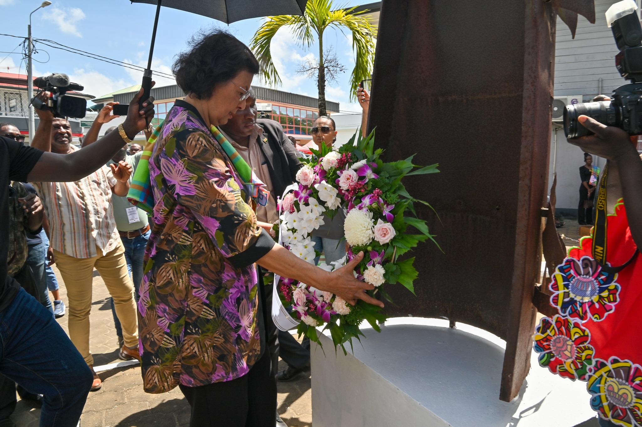Tijdens haar toespraak wees de president erop dat de strijd van de marrons 265 jaar geleden het begin vormde van een reeks daden die uiteindelijk leidden tot de afschaffing van de slavernij in 1863. Ze benadrukte dat de vrijheid die toen bevochten werd, een collectieve verantwoordelijkheid schept om vandaag samen te bouwen aan een rechtvaardige toekomst.