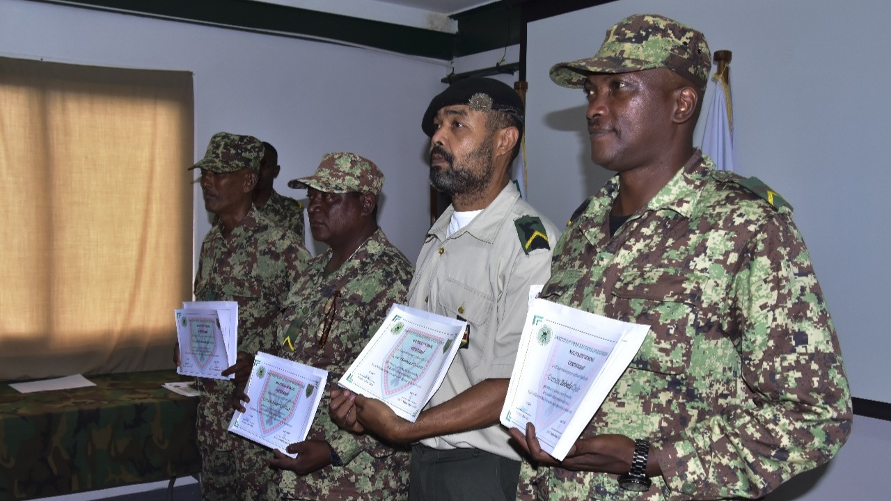 Ruim twintig militaire functionarissen hebben vandaag hun certificaten ontvangen na het succesvol afronden van de Groepscommandant cursus 2025-01 bij het Instituut voor Defensie Opleidingen (IDO). In totaal 21 cursisten van verschillende afdelingen van het Nationaal Leger namen deel aan de intensieve vier maanden durende opleiding, die zowel theoretische als praktische trainingen omvatte.